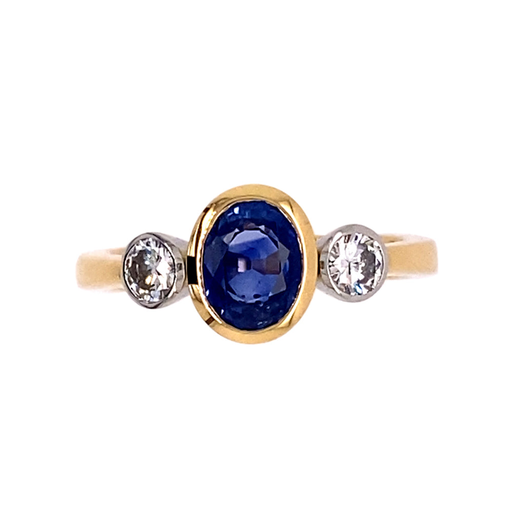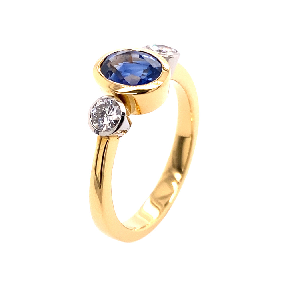 Ring Tres aus Gelbgold und Platin mit Saphir und Diamant, hochwertiger Schmuck aus unserer Werkstatt