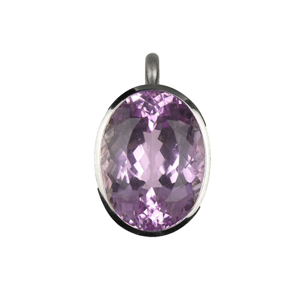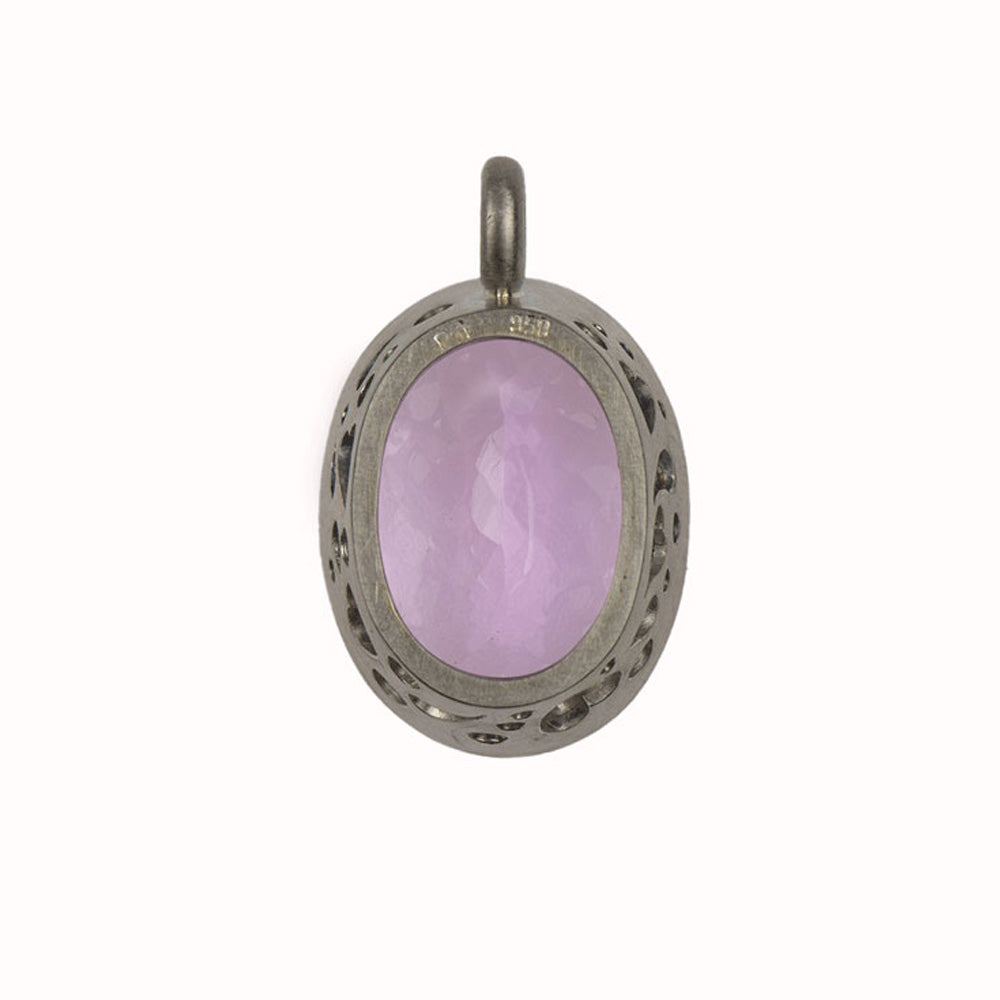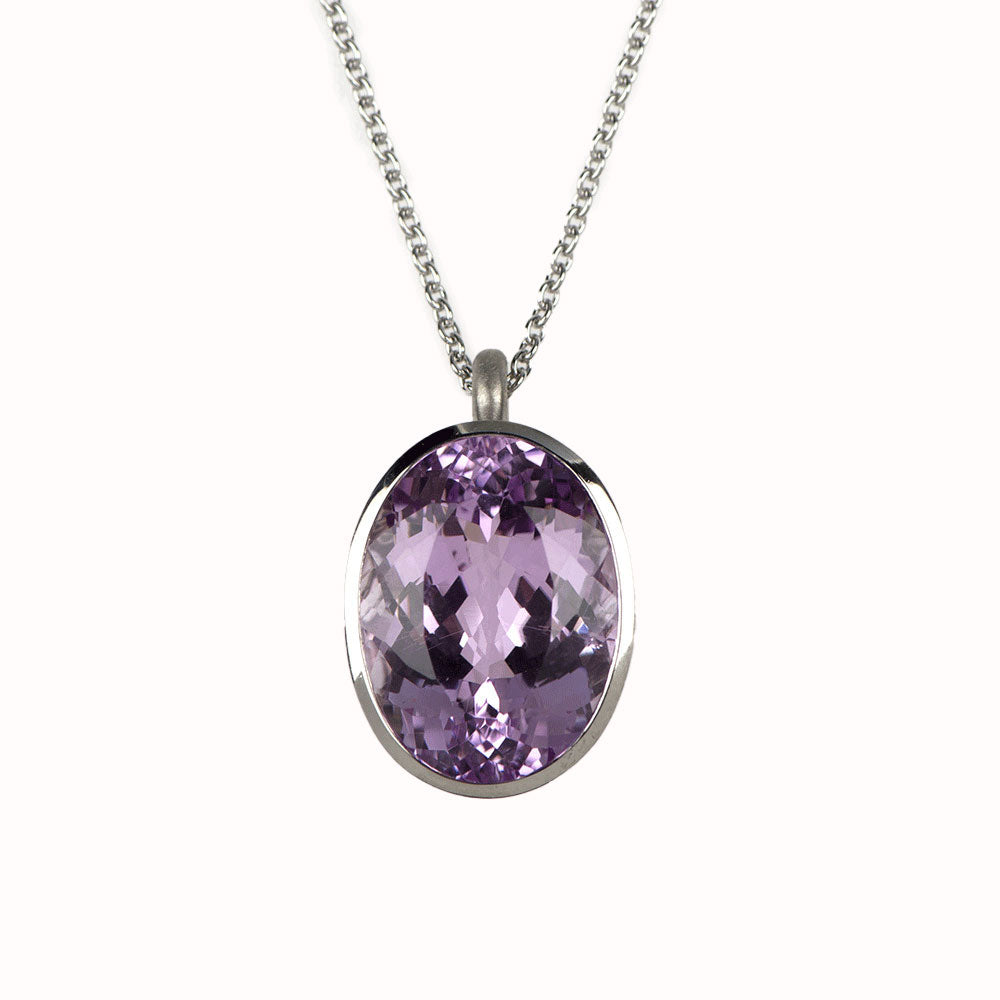 Bei dem Schmuckstück handelt es sich um einen in Handarbeit gefertigten Anhänger "Cupcake" aus 950 Palladium mit einem ovalen facettierten Kunzit von ca. 20,95 ct. Der Anhänger hat eine Höhe von 11,3 mm, eine Breite von 16,5 mm und einen Länge von 26,5 mm.