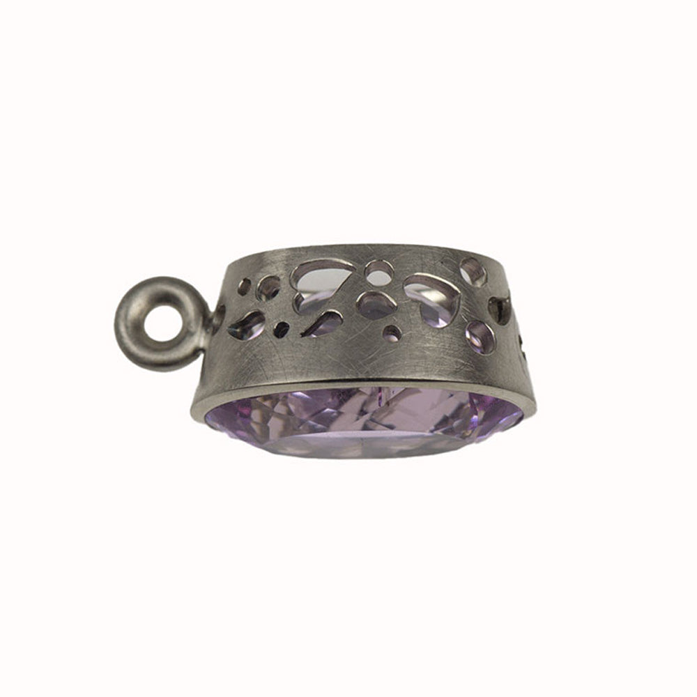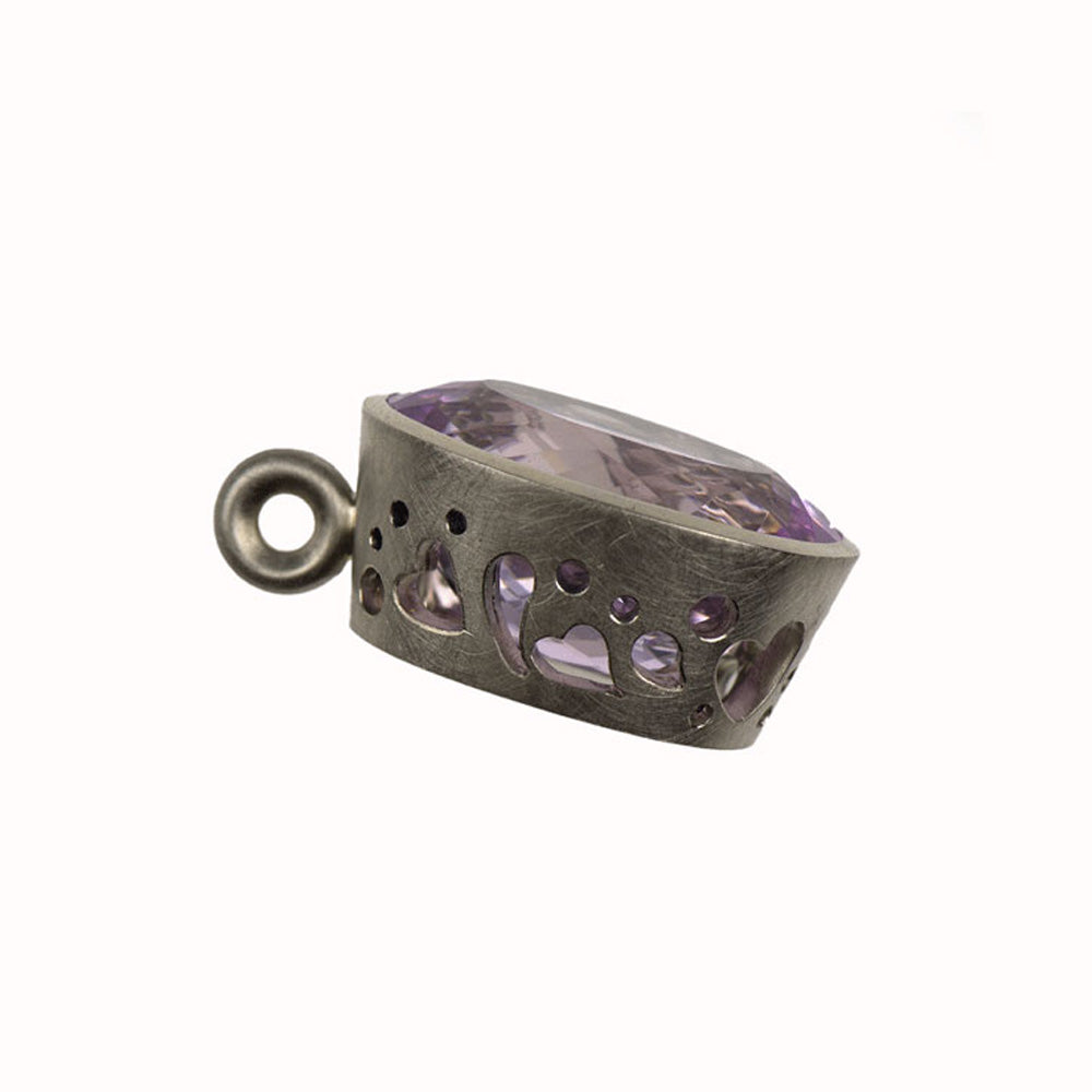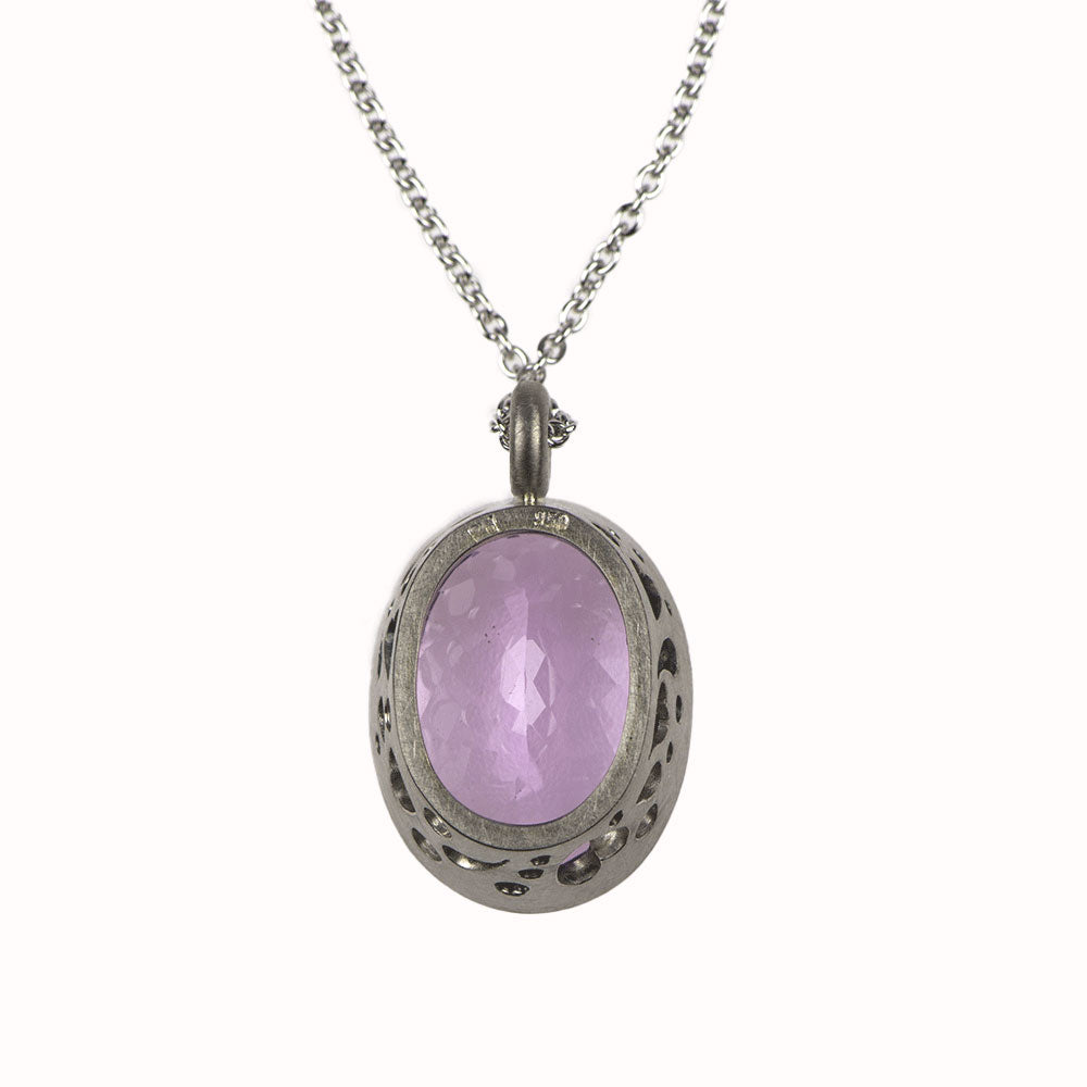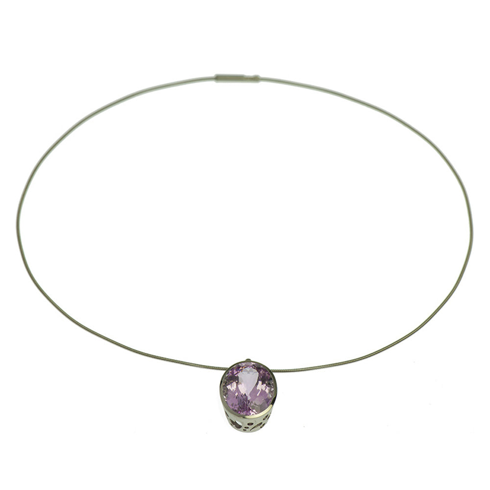 Bei dem Schmuckstück handelt es sich um einen in Handarbeit gefertigten Anhänger "Cupcake" aus 950 Palladium mit einem ovalen facettierten Kunzit von ca. 20,95 ct. Der Anhänger hat eine Höhe von 11,3 mm, eine Breite von 16,5 mm und einen Länge von 26,5 mm.