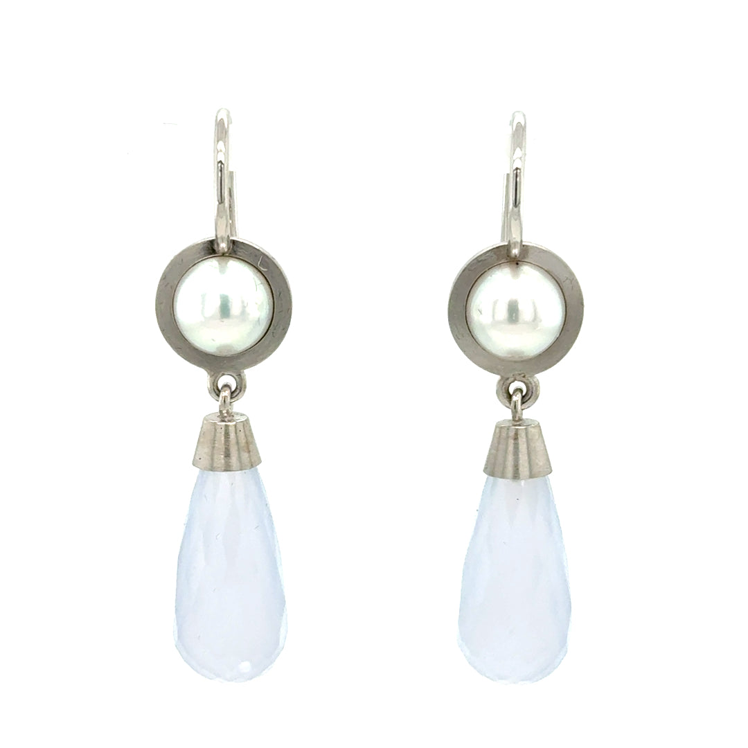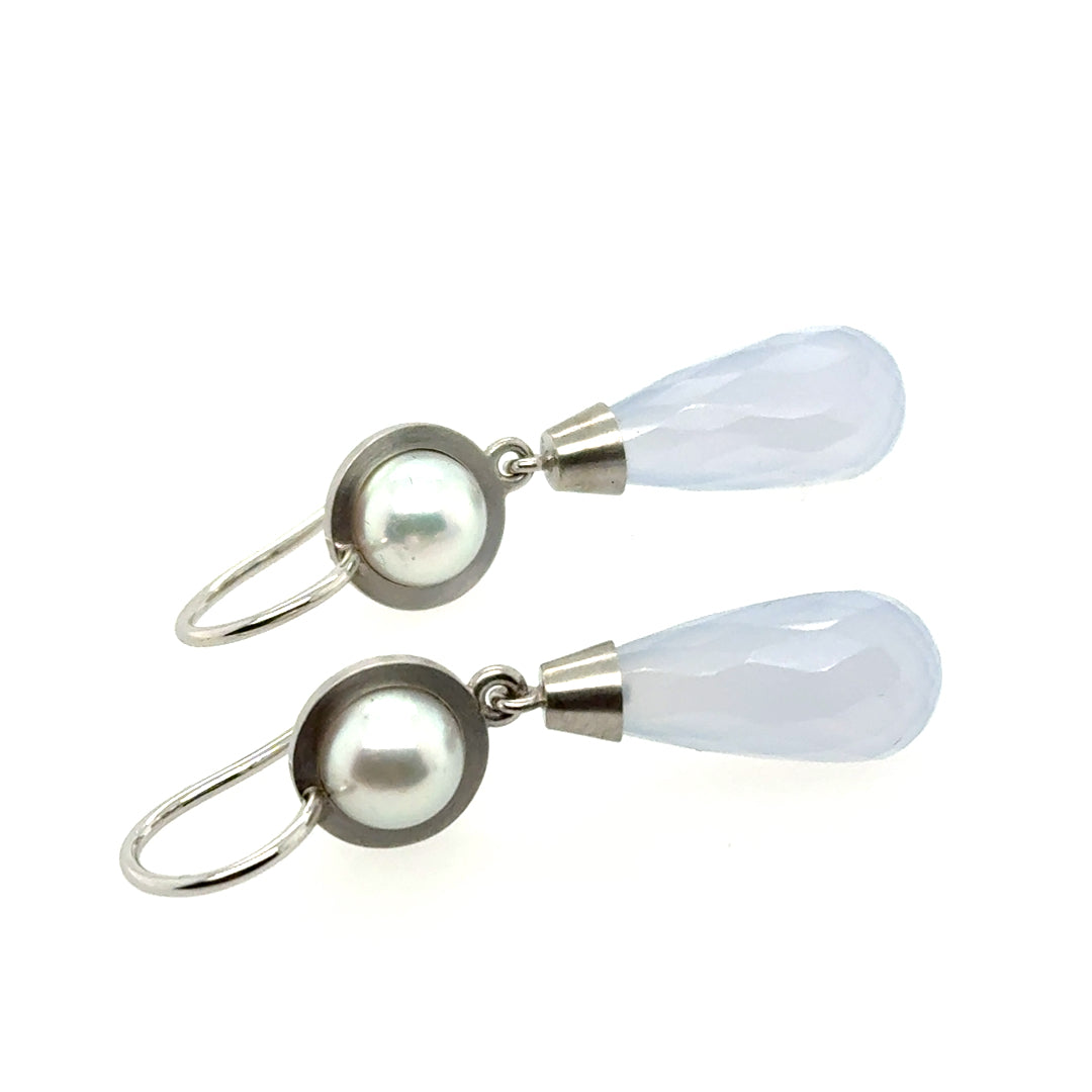 Ohrhänger aus Platin mit Akoyazuchtperle und Chalcedon