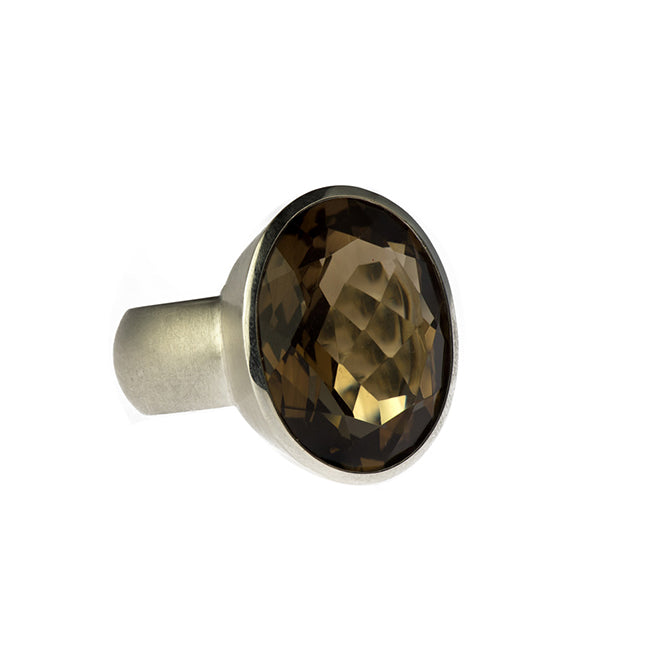 Ring Alice aus Silber mit Rauchquarz, hochwertiger Schmuck aus unserer Werkstatt