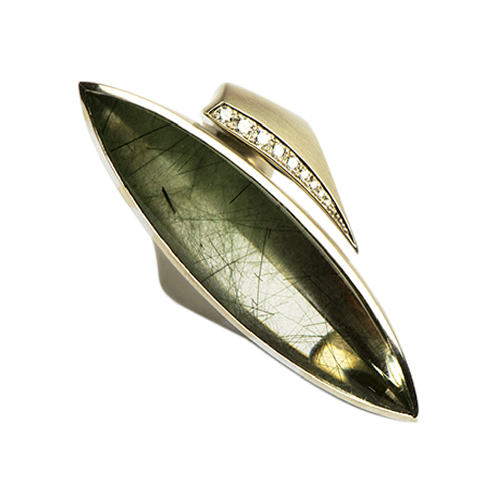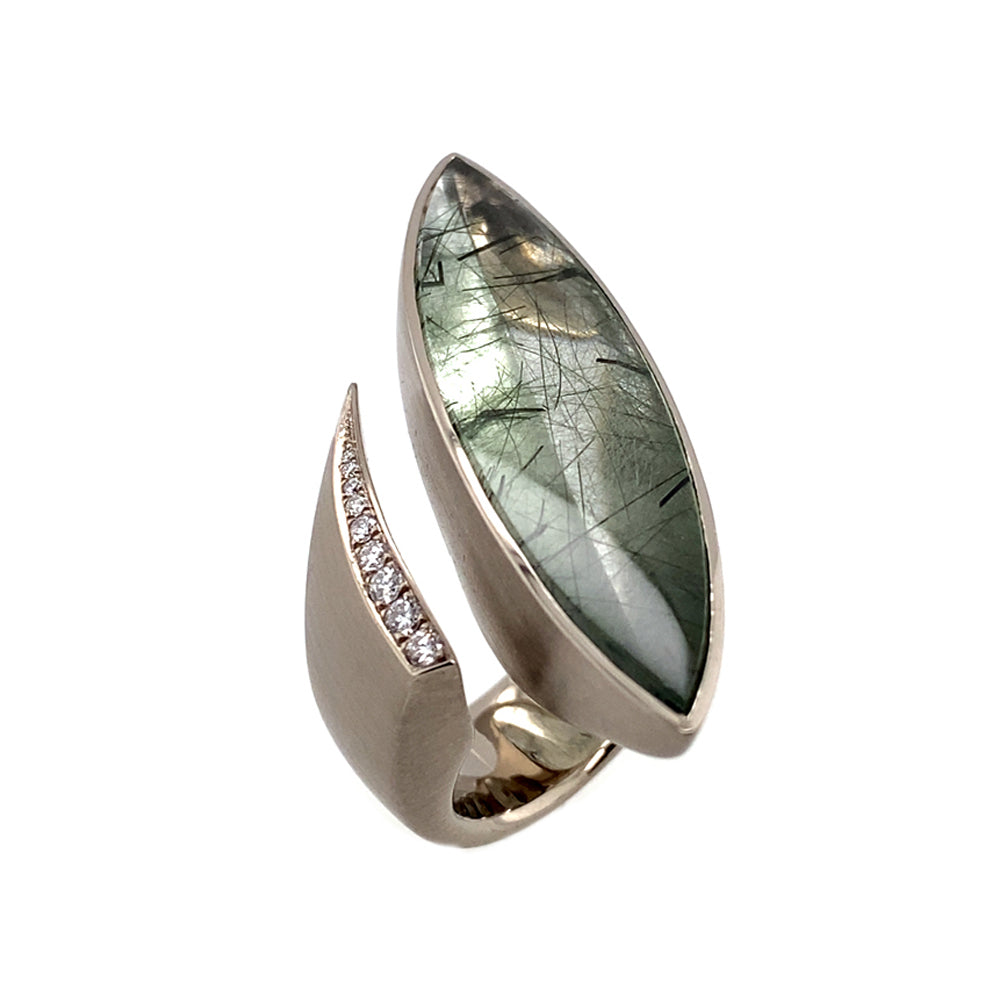 Ring Olivia aus Weißgold mit Aktinolithquarz und Brillant