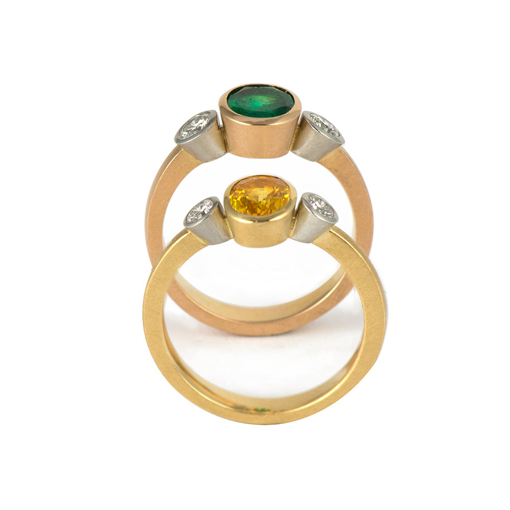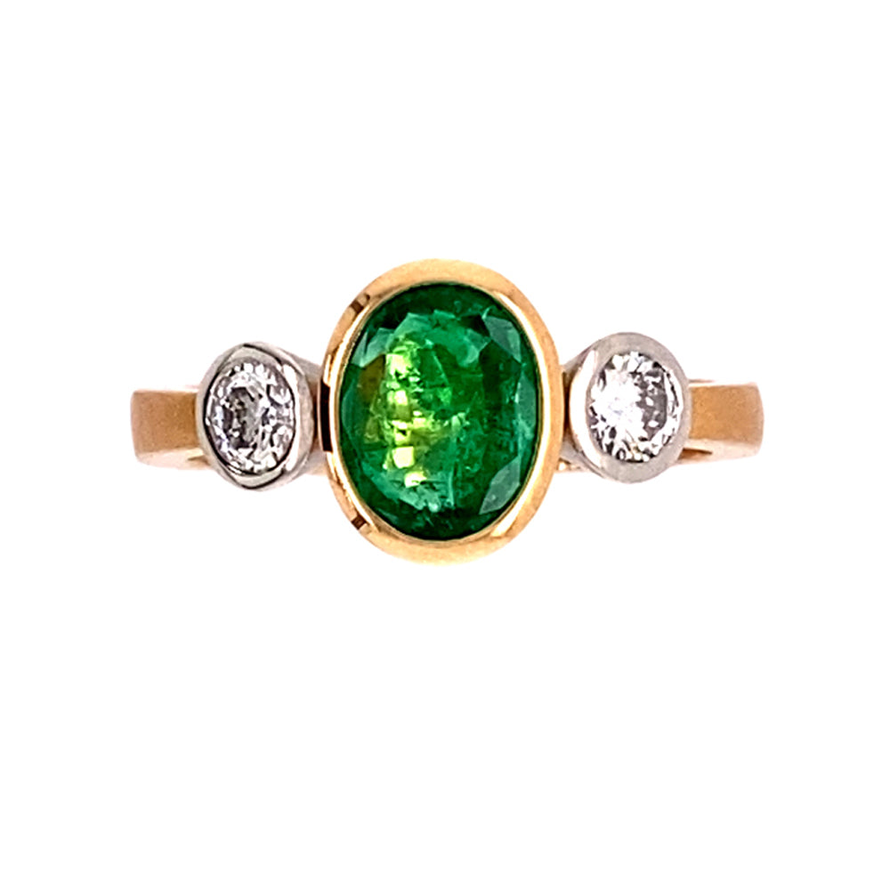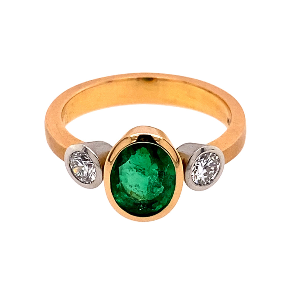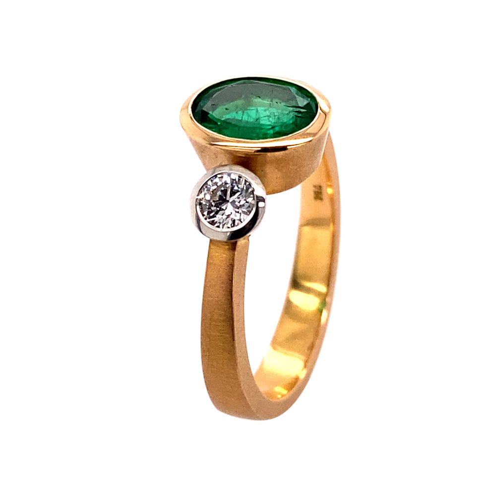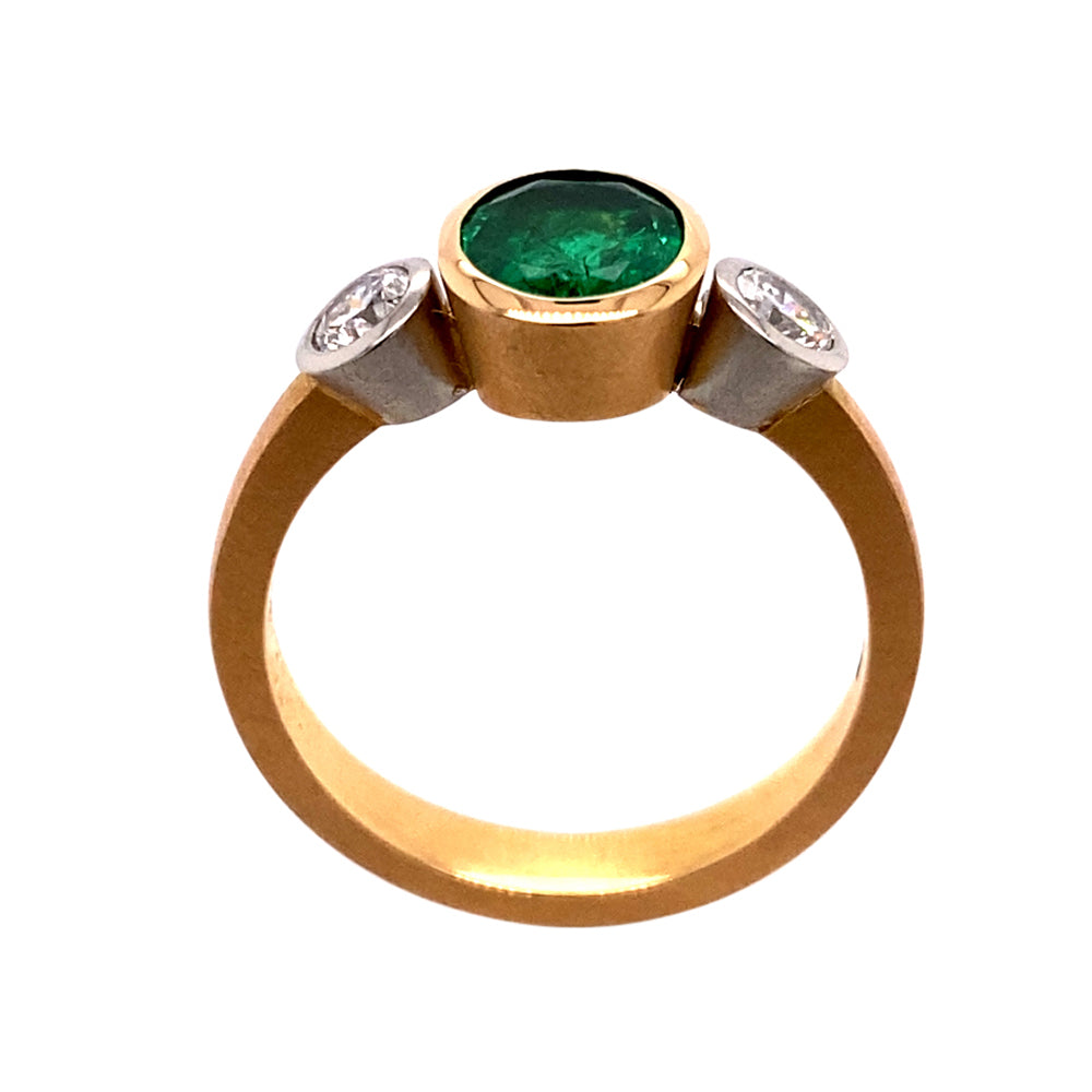 Ring Tres aus Rotgold und Platin mit Smaragd und Diamant, hochwertiger Schmuck aus unserer Werkstatt