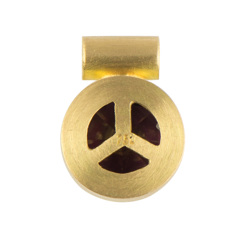 Bei dem Schmuckstück handelt es sich um einen in Handarbeit gefertigten Anhänger "Granat" aus 750 Gelbgold mit einem Granat von ca. 1,45 ct.