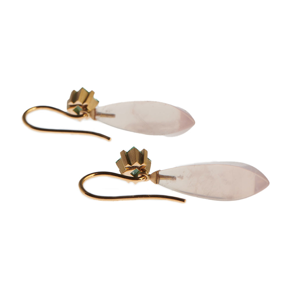 Ohrhänger Summertime aus Rotgold mit Turmalin und Rosenquarz, hochwertiger Schmuck aus unserer Werkstatt