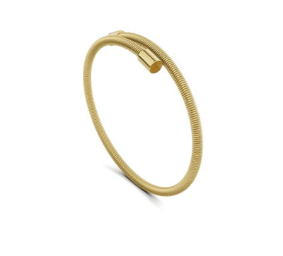 Bei dem Schmuckstück handelt es sich um einen Armschmuck "Colette Elementyx Embrace Zylinder" der Manufaktur Niessing aus 750 Gelbgold. Der Armschmuck hat einen Durchmesser von 59 mm.