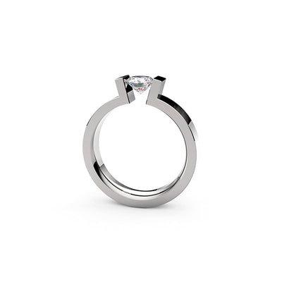 Bei dem Schmuckstück handelt es sich um einen Spannring "HighEnd S" der Manufaktur Niessing aus 950 Platin mit einem Brillanten von ca. 0,19 ct feines Weiß mit sehr kleinen Einschlüssen (TW/vs1). Dier Ring hat eine Stärke von 1,4 mm, eine Breite von 3,2 mm und eine Ringweite von 54.