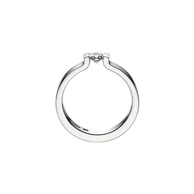 Bei dem Schmuckstück handelt es sich um einen Spannring "OpenEnd S" der Manufaktur Niessing aus 950 Platin mit einem Brillanten von ca. 0,21 ct feines Weiß mit sehr kleinen Einschlüssen (TW/vs1). Der Ring hat eine Stärke von 1,5 mm, eine Breite von 3,2 mm und eine Ringweite von 53.