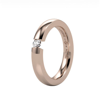 Bei dem Schmuckstück handelt es sich um einen Spannring "Balance" der Manufaktur Niessing aus 750 Rosewood mit einem Brillant, ca. 0,10 ct, feines Weiß mit sehr kleinen Einschlüssen (Tw/vs2). Der Spannring hat eine Höhe von 2,6 mm, eine Breite von 3 mm und die Ringweite 54.
