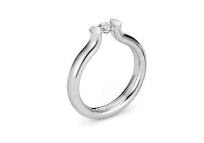Bei dem Schmuckstück handelt es sich um einen Spannring "Heaven S" der Manufaktur Niessing aus 950 Platin mit einem Brillanten von ca. 0,27 ct feines Weiß mit sehr kleinen Einschlüssen (TW/vs). Der Ring hat eine Breite von 3,3 mm, eine Höhe von 2,6 mm und die Ringweite beträgt 52.